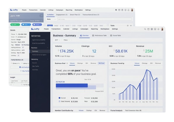 This software helps real estate businesses manage property listings, clients, leads, and transactions all in one place